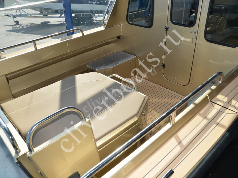 - Реллинги на крыше рубки и по периметру кокпита позволяют закрепить огромное количество снастей, оборудования для троллинга и эхолокации.