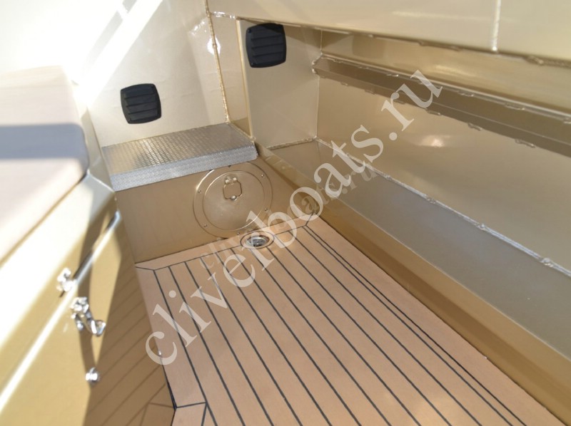 Запас хода катера – более 500 км. Это важный момент, если вы собираетесь отправиться в «дикую» местность и не хотите все свободное пространство заставить канистрами с топливом.